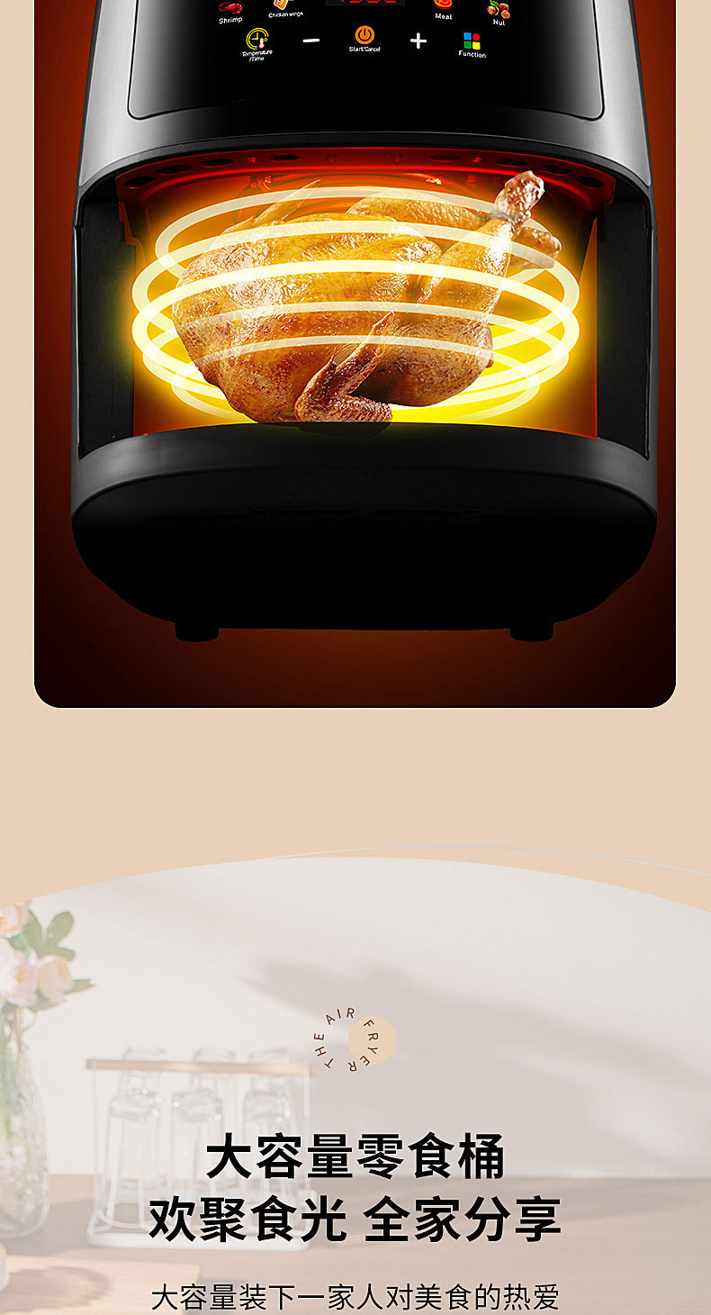 Multifunctional Home Visual 8L Large Capacity New 2024 Stainless Steel Automatic Air Fryer